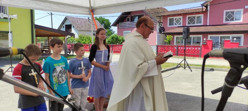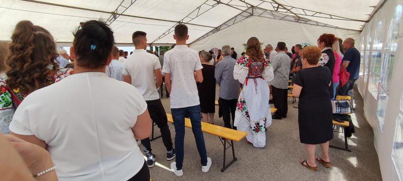 Tako je bilo i ove godine. Misu i blagoslov polja predvodio je naš župnik fra Marijan Mićo Živković. Na platou ispred doma okupio se lijep broj mještana Bazika i susjednih sela.